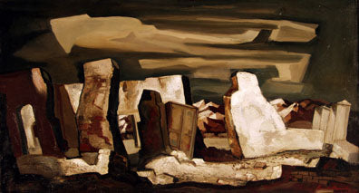 Early in his artistic career, Doel Reed knew he wanted to be a printmaker. Influenced by Goya's aquatints, he extended himself beyond his formal art training to learn this technique, and he established himself as one of its masters. For decades, he devoted himself to the art program at the University of Oklahoma, taking it from a faculty of one to a major mid-Western department. Upon retirement, Reed focused totally on his work, moving with his family to Taos, New Mexico, where they had previously summered. Marked by strong tonal contrasts, his landscapes of this region are deeply emotional renderings with a sense of mystery -- modernist forms combined with romantic moodiness.