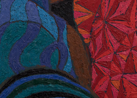 In addition to paintings and works on paper, he produced hooked rugs, textiles and ceramics. He likewise produced designs for ceramics, tableware and furniture created by his wife Donna, an accomplished Colorado ceramist.
