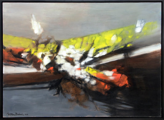 Along the Way (Abstract in Gray, Black, White, Yellow, and Orange), Painting, 1960