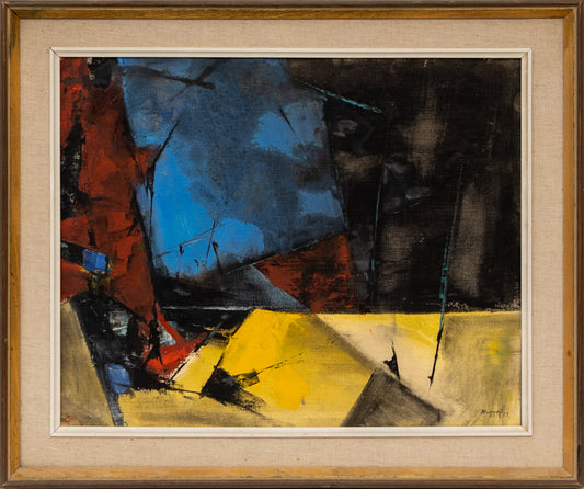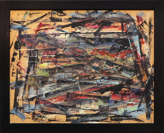 Untitled (Abstract Expressionist Composition in Yellow, Blue Red and Black), Painting, 1959