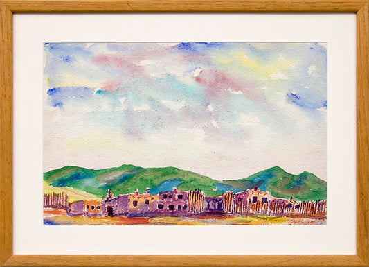 Untitled (Landscape of Adobe Buildings with Mountains), Painting