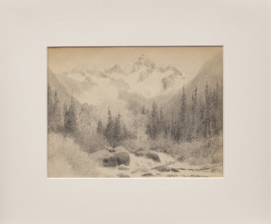 Untitled (Stream, Pine Trees, and Mountains), Drawing, circa 1910