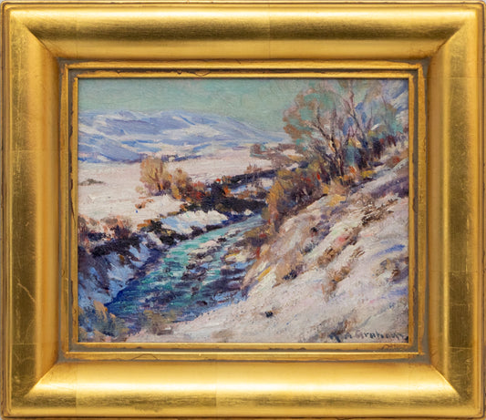 Melting Snow (Colorado Landscape with Creek and Mountains), Painting, circa 1920-1930
