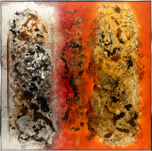 Witches Banner (Abstract in Violet, Orange, Blue, Burgundy, and Green), Painting, 1960