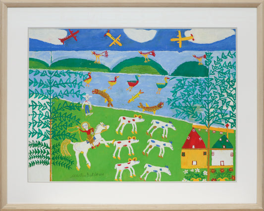 Ethel, The Blue Spotted Cow (Composition with Cows, People, and Birds), Painting, 1953-1965