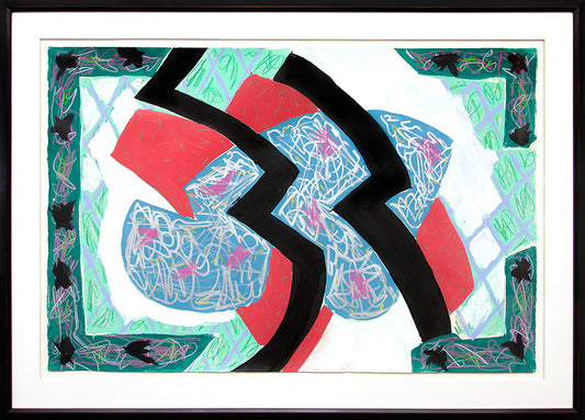 Faulkner in Fresno (Abstract in Teal, Blue, Black, and White), Painting, 1986