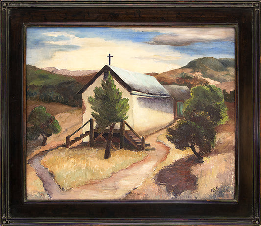 Subjects related to New Mexico and the early artists drawn to the vast landscape and thriving artist communities. Landscapes, western and Native American subject matter.