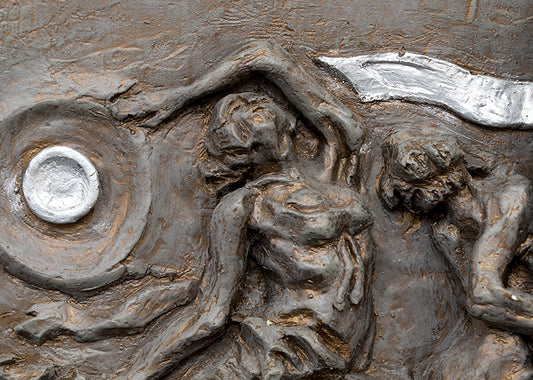Sculpture, relief and carvings including smaller format tabletop pieces. Styles and subject matter include figurative, abstract, modern, futurist, western, animals, portraits and more. Mediums include bronze, metalwork, ceramic and wood.