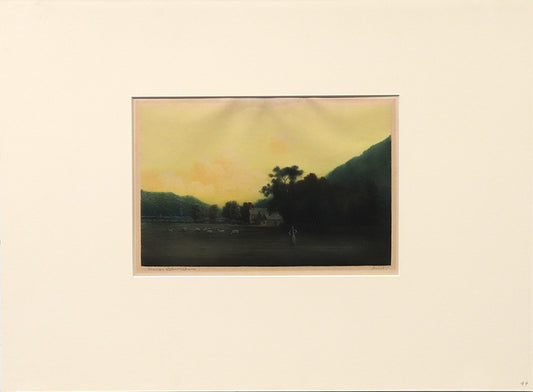 Evening in North Wales (Landscape of Hills and Sheep at Dusk), Print, circa 1905