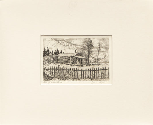 Out of the Past (View of Cabin with Trees and Mountains), Print, circa 1929-1930