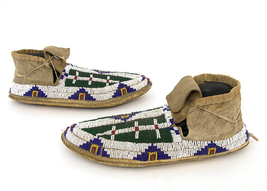 Beaded Moccasins with Buffalo Track and Tipi Motifs, circa 1880