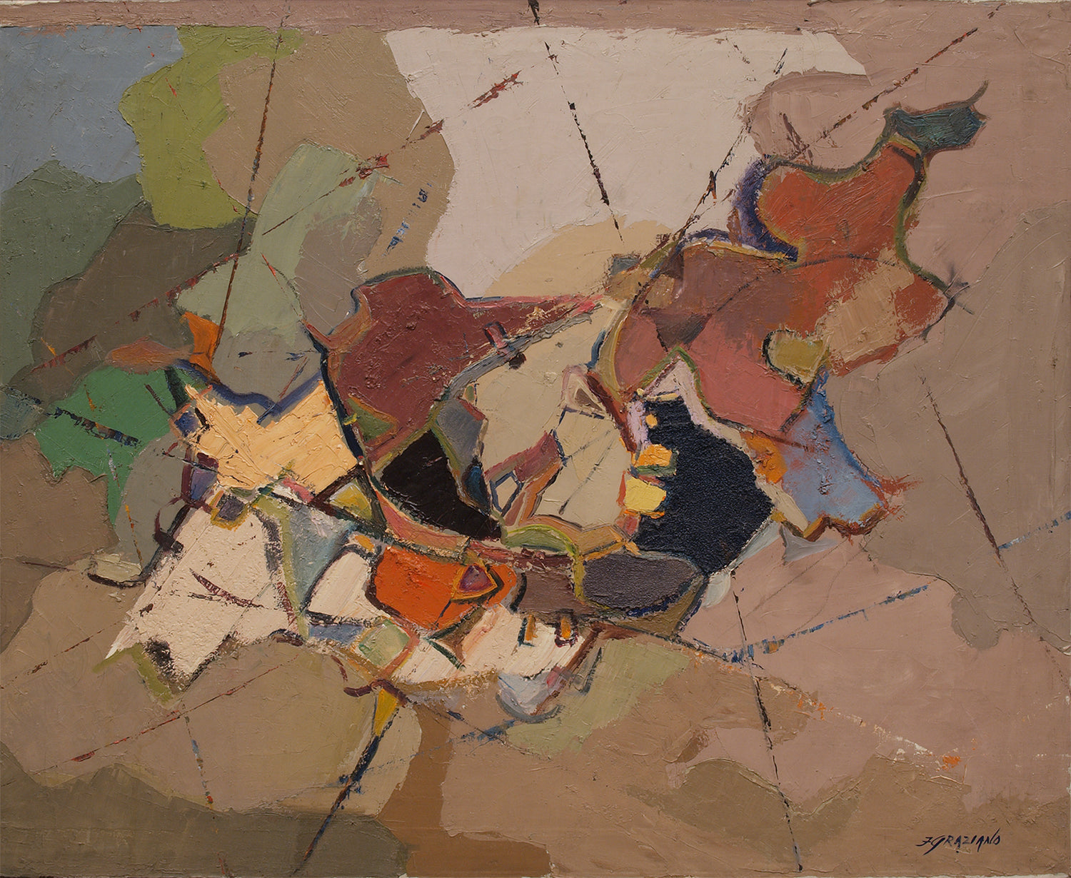 Galaxie #122 (Abstract Composition in Mauve, Violet, Yellow, and Taupe), Painting, 1971