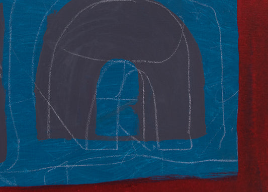 Facade (Abstract in Blue, Purple, Fuchsia, Black and Red & Orange), Mixed Media Painting, 1961