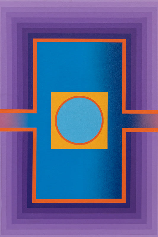 Rays (Abstract Colorist Composition in Violet, Orange, and Cerulean), Painting, circa 1975