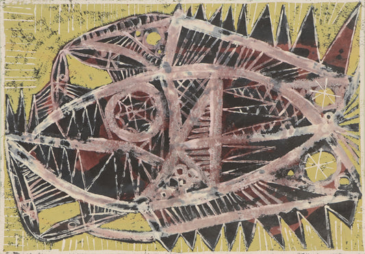 Birds and Fish (Abstract in Yellow, Red, and Black), Painting, circa 1960