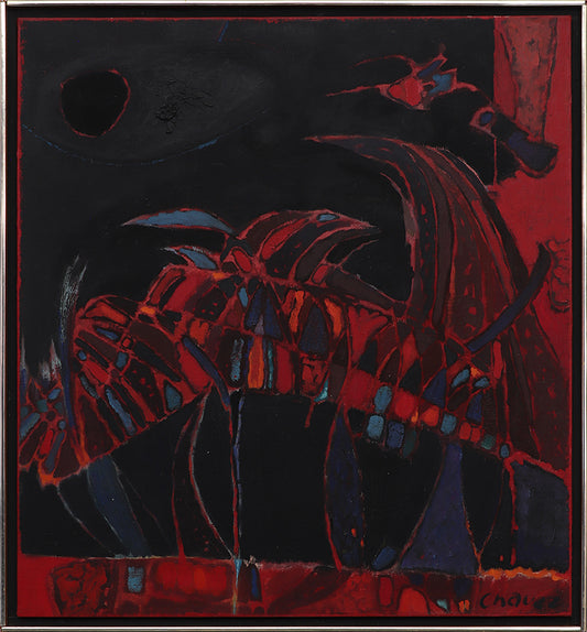 Elk Being (Abstracted Composition of an Elk Being in Turquoise, Red, and Black), Painting, 1994