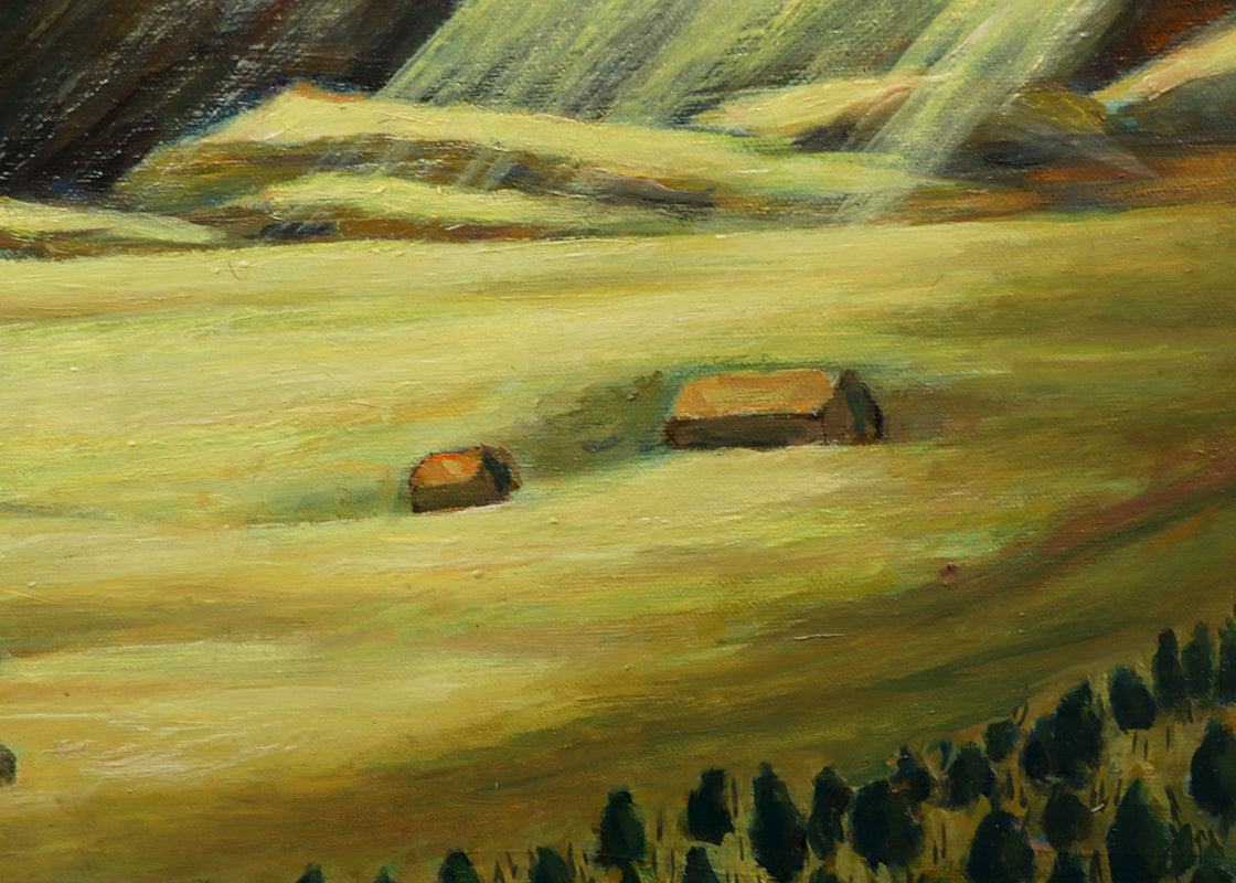 After Storm, San Cristobal Valley Ranch, Taos-Questa Road, Santa Fe, New Mexico, original vintage landscape painting. Oil on canvas. Signed by the artist and dated, January 1968, lower left; Titled on reverse. Presented in a custom frame.