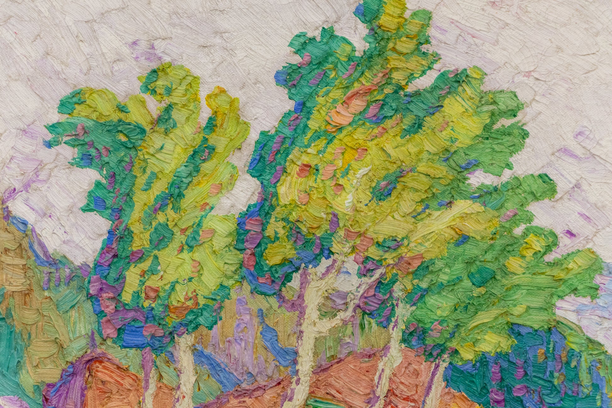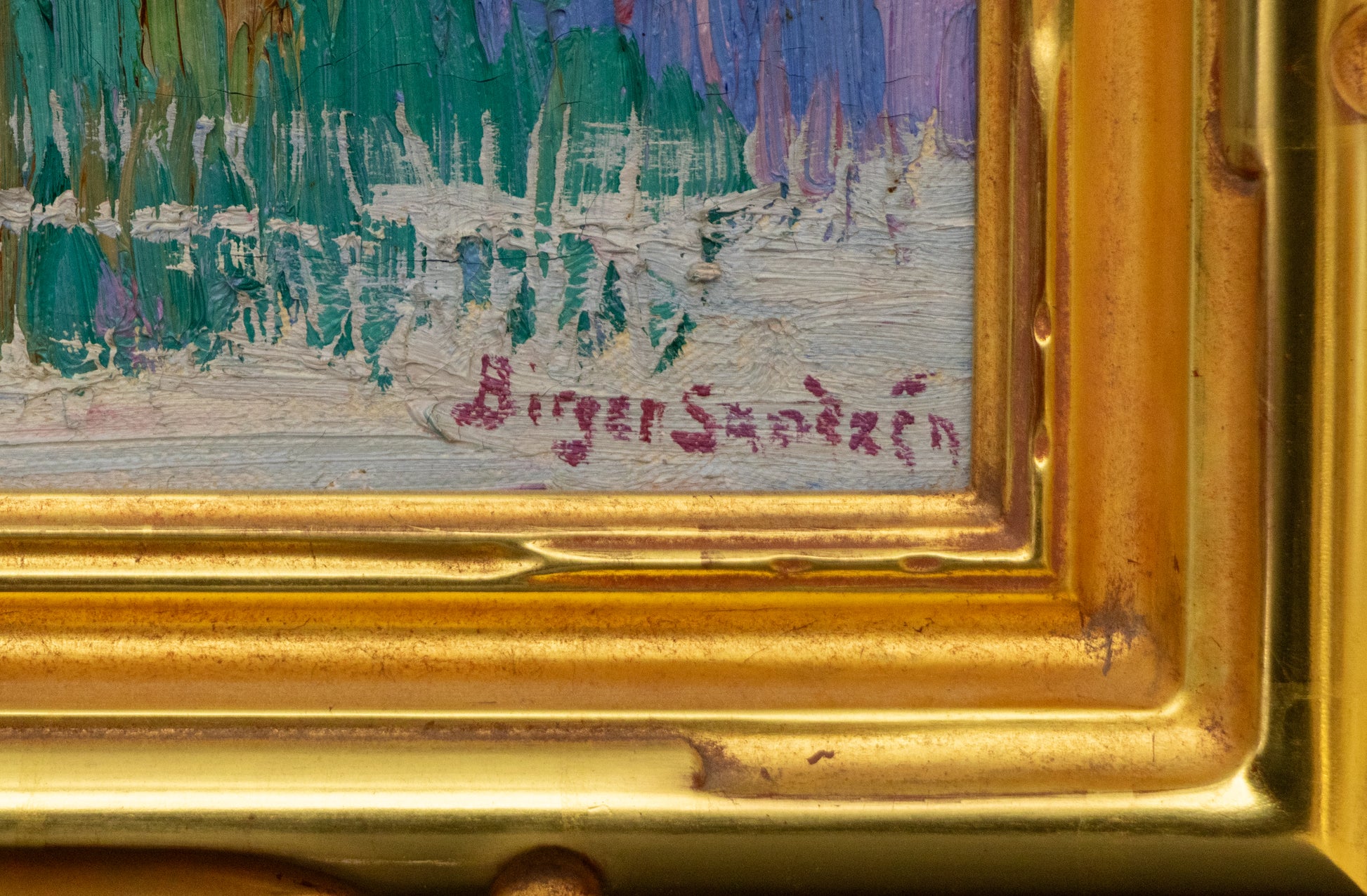 Sandzén first visited the Rocky Mountains of Colorado in 1908 and began painting in the Colorado Springs area around 1916. The artist made his first trip to New Mexico in 1918 and was a frequent visitor to Santa Fe and Taos in the years that followed. He was elected an associate member of the Taos Society of Artists in 1922. Sandzén spent the summers of 1923-24 teaching at the Broadmoor Academy in Colorado Springs, Colorado (presently the Colorado Springs Fine Arts Center). Birger also taught at Chappell House (the forerunner to the Denver Art Museum), Utah State Agricultural College, Stephens