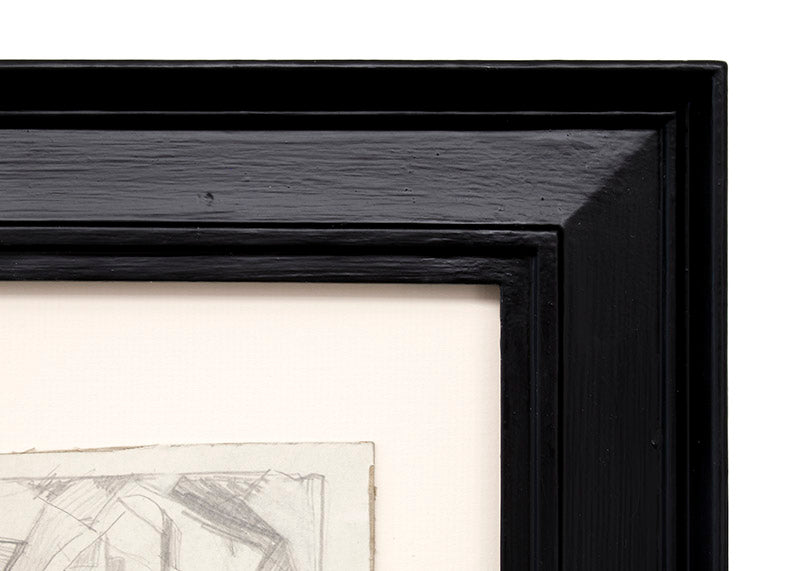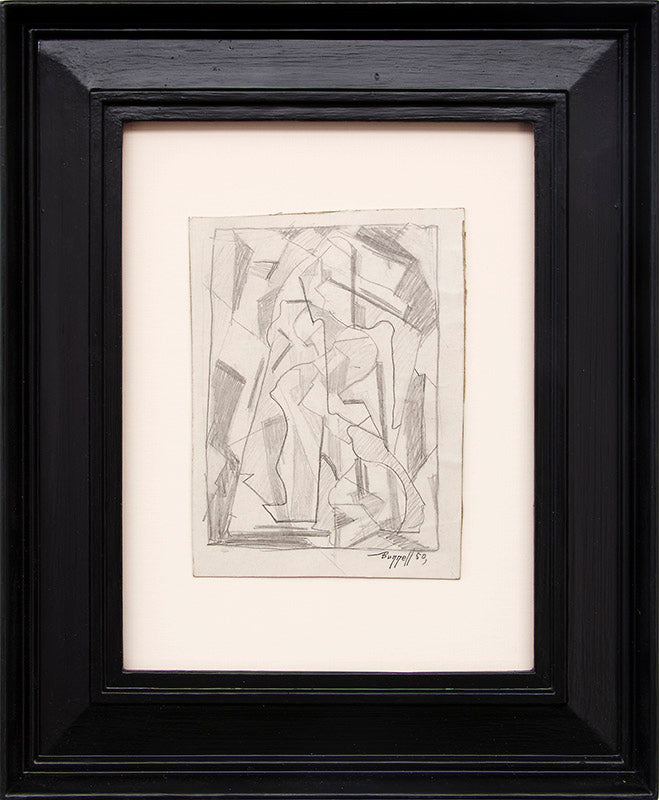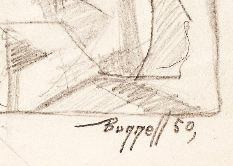 Original vintage abstract drawing by Colorado artist Charles Ragland Bunnell. Graphite on paper. Signed by the artist and dated, 1950, lower right. Presented in a custom frame with an archival mat and UV70 protectant glass.