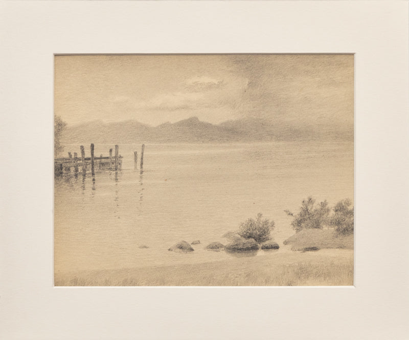 "Clenbrook, Nevada", original circa 1910 drawing by Colorado artist Charles Partridge Adams. Landscape depicting Glenbrook, Nevada, which is located on the east shore of Lake Tahoe. Graphite on paper. Titled upper right margin. Includes a letter of authenticity. Unframed, custom framing options available.
