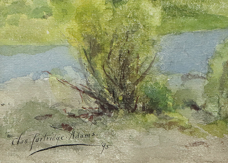 In 1890, Adams married Alida Joslin Reynolds and the couple honeymooned in Estes Park, Colorado. That same year, he exhibited for the first time at the National Academy of Design. Three years later, the artist opened his first studio on Larimer Street in Denver. He began working in watercolor and had success in the new medium selling his paintings in stores in Colorado Springs, Pueblo, Kansas City, and Chicago. Also in 1893, Adams became a charter member of the Denver Artists Club.