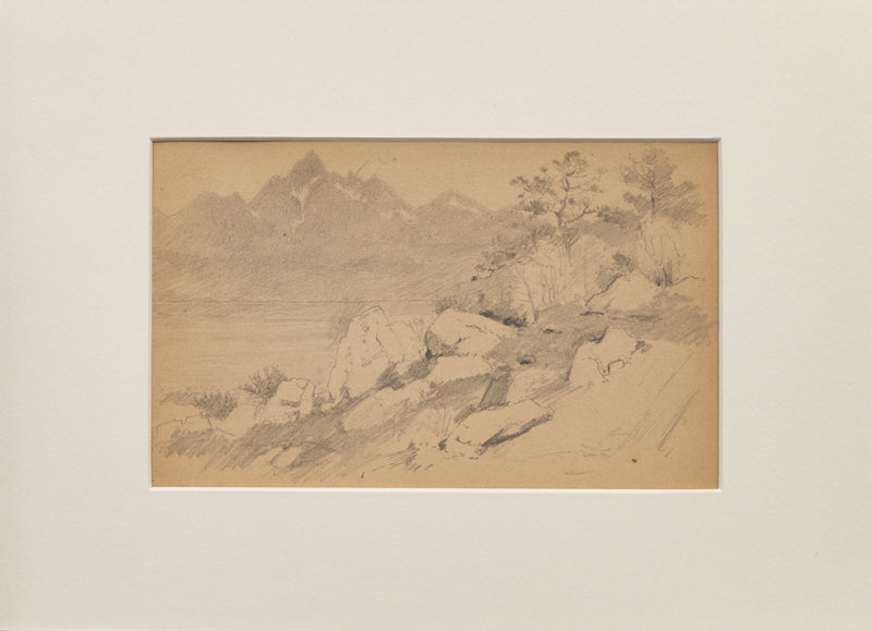 Original circa 1910 drawing by Colorado artist Charles Partridge Adams. Landscape depicting a formation of rocks and boulders in the foreground, with mountains towering in the distance. Graphite on paper. Includes a letter of authenticity. Unframed, custom framing options available.