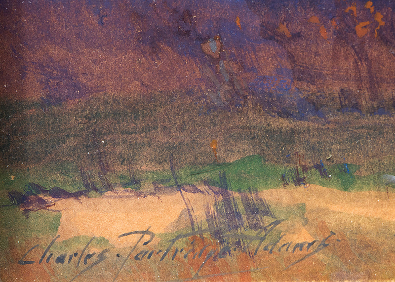 In 1890, Adams married Alida Joslin Reynolds and the couple honeymooned in Estes Park, Colorado. That same year, he exhibited for the first time at the National Academy of Design. Three years later, the artist opened his first studio on Larimer Street in Denver. He began working in watercolor and had success in the new medium selling his paintings in stores in Colorado Springs, Pueblo, Kansas City, and Chicago. Also in 1893, Adams became a charter member of the Denver Artists Club.