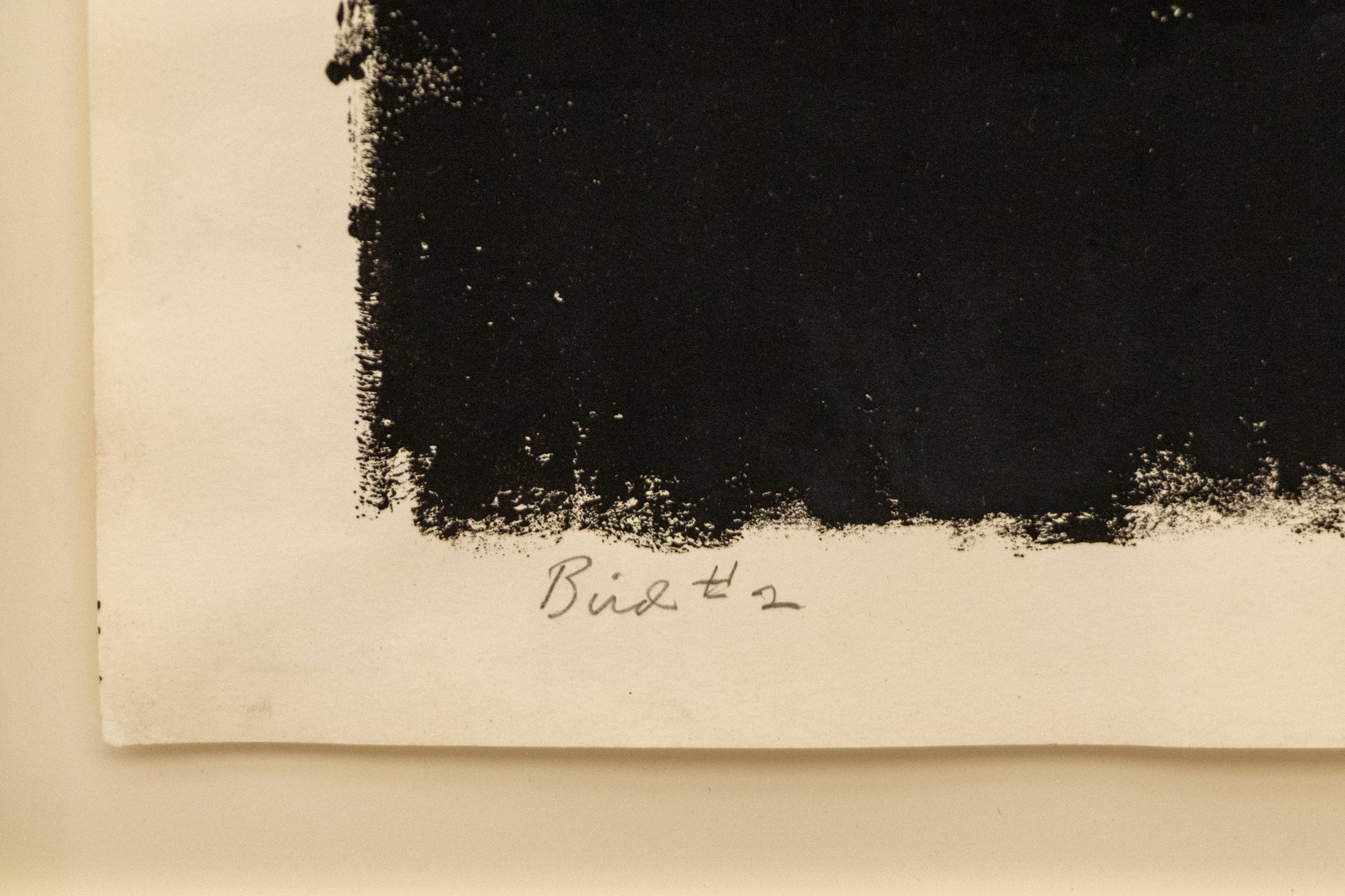 "Bird #2," vintage black and white modernist print by Edgar Britton. Composition depicts a white dove standing out against a stark black field. Monotype on paper. Pencil signed by the artist and titled lower margin. Presented in a custom frame with 8-ply archival mat and UV70 protectant glass.