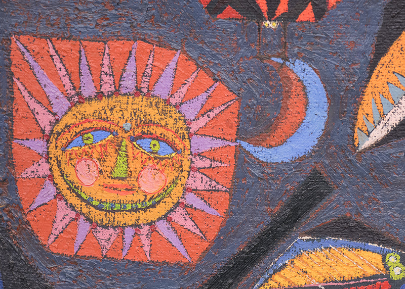 Prior to coming to Colorado, Marecak did watercolors resembling those of Winslow Homer, John Singer Sargent and Charles Burchfield. However, once in Colorado Springs he decided to destroy much of his earlier ouevre, embarking on a totally new direction unlike anything he had previously done. Initially, in the 1940s he was influenced by surrealist imagery and Paul Klee, and in the West by Indian petroglyphs and Kachinas. His first one-person show at the Garrett Gallery in Colorado Springs in 1949 featured paintings and lithographs rendered in the style of Surrealism, Magic Realism & Fantasy and referential abstraction. The pieces, including an oil Witch with Pink Dish, foreshadowed the output of his entire Colorado-based career, distinguished by a dramatic use of color, intricacy of execution and attention to detail contributing to their visual impact. He once observed, "Each time I start a new painting I always fool myself by saying this time keep it simple and not get entangled with such complex patterns, color and design; but I always find myself getting more involved with richness, color and subject matter."