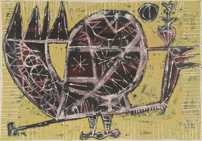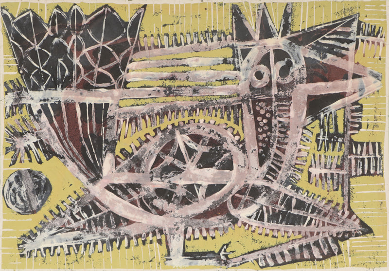 Birds and Fish (Abstract in Yellow, Red, and Black), Painting, circa 1960