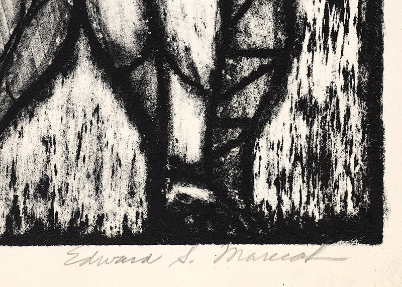 Following his military discharge, Marecak studied on the G.I. Bill at the Colorado Springs Fine Arts Center from 1946 to 1950, having previously met its director, Boardman Robinson, conducting a seminar in mural painting at the Cleveland Institute of Art. Although he did not work with Robinson at the Fine Arts Center, who had become quite ill - retiring in 1947 - he studied Robinson's specialty of mural painting before leaving to briefly attend the Cranbrook Academy in 1947. That same year he returned to the Fine Arts Center, studying painting with Jean Charlot and Mary Chenoweth, and lithography with Lawrence Barrett with whom he produced some 132 images during 1948-49.