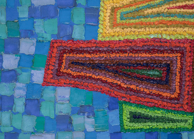 In addition to paintings and works on paper, he produced hooked rugs, textiles and ceramics. He likewise produced designs for ceramics, tableware and furniture created by his wife Donna, an accomplished Colorado ceramist.