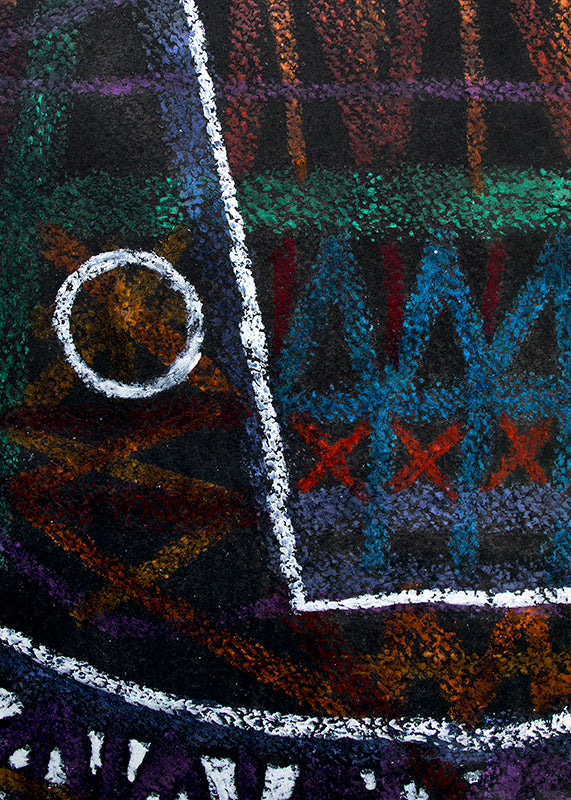 In addition to paintings and works on paper, he produced hooked rugs, textiles and ceramics. He likewise produced designs for ceramics, tableware and furniture created by his wife Donna, an accomplished Colorado ceramist.