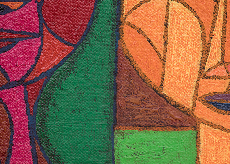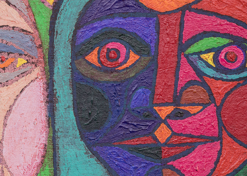 "The Committee", original painting by Edward Marecak. The semi abstract composition depicts the busts of four women, each rendered in different colors and styles. Acrylic on canvas board. Estate stamped, titled, and dated, 1980, on reverse. Unframed, custom framing options available.