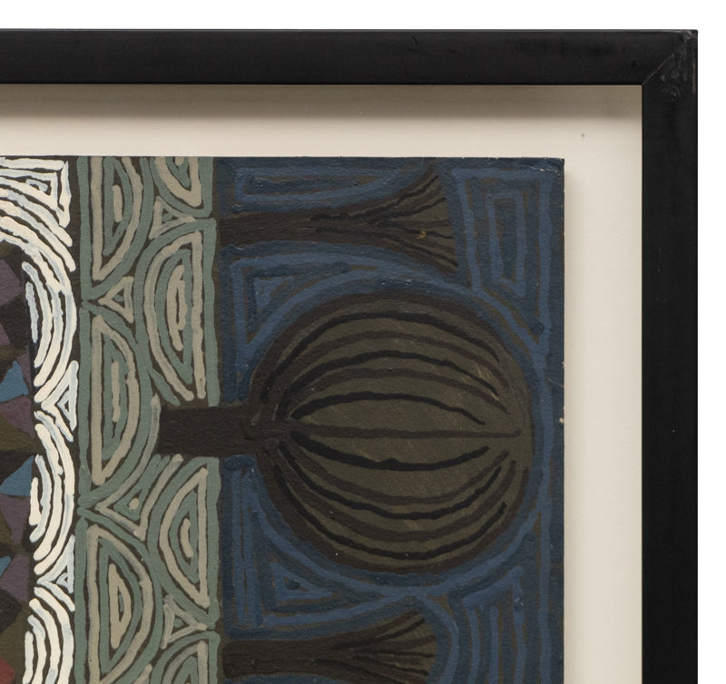 In addition to paintings and works on paper, he produced hooked rugs, textiles and ceramics. He likewise produced designs for ceramics, tableware and furniture created by his wife Donna, an accomplished Colorado ceramist.