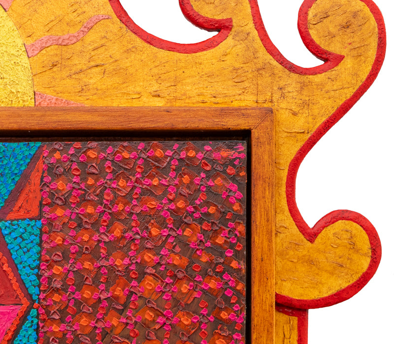 Prior to coming to Colorado, Marecak did watercolors resembling those of Winslow Homer, John Singer Sargent and Charles Burchfield. However, once in Colorado Springs he decided to destroy much of his earlier ouevre, embarking on a totally new direction unlike anything he had previously done. Initially, in the 1940s he was influenced by surrealist imagery and Paul Klee, and in the West by Indian petroglyphs and Kachinas. His first one-person show at the Garrett Gallery in Colorado Springs in 1949 featured paintings and lithographs rendered in the style of Surrealism, Magic Realism & Fantasy and referential abstraction. The pieces, including an oil Witch with Pink Dish, foreshadowed the output of his entire Colorado-based career, distinguished by a dramatic use of color, intricacy of execution and attention to detail contributing to their visual impact. He once observed, "Each time I start a new painting I always fool myself by saying this time keep it simple and not get entangled with such complex patterns, color and design; but I always find myself getting more involved with richness, color and subject matter."