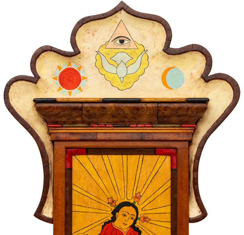 A longtime resident of Denver, Colorado Michael R. Blatnik also lived for a time in Taos, New Mexico. He has spent much of his 40 year career in restoration and framing of fine art and antique objects. The abstract concepts of faith have always intrigued Blatnik and he still marvels at the physical manifestation of spiritual thought. Living in New Mexico gave him the opportunity to study the art forms of the Penitente Brotherhood. He found in the presentation of the retables and bultos a hauntingly compelling simplicity. The pursuit and study of folk art and faith have brought Blatnik to this space in time and the works he produces. "Graven images are only such when one merely lacks the knowledge to perceive a deeper intent." - biography courtesy of Michael R. Blatnik.