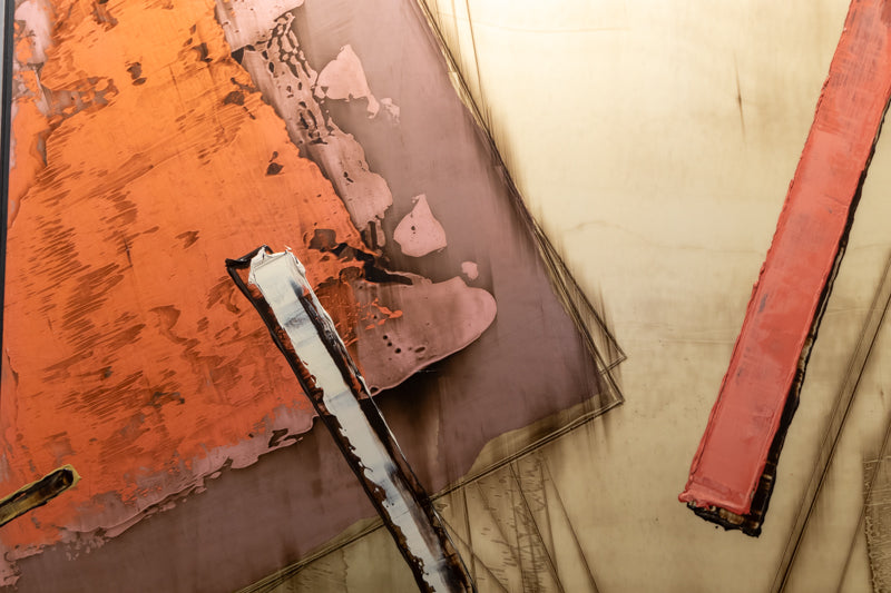 Rebound Series #2 (Abstract composition with Rust, Mauve, and Blue polygons on a Beige Field), Painting, 1983