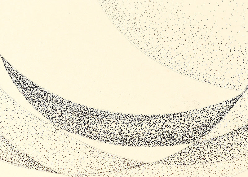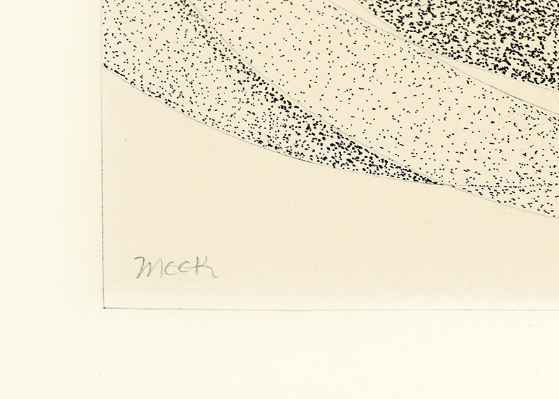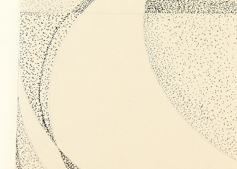 Original mixed media drawing by Colorado artist James Meek. Abstract geometric composition depicting the sun and the moon in neutral shades of black and gray on a beige field. Ink and graphite on paper. Signed by the artist, lower left. Presented in an archival mat. Custom framing options are available.