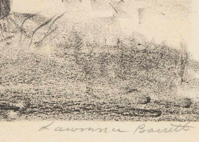 Lawrence Barrett was an etcher, lithographer, teacher, illustrator, sculptor, writer, and painter. Born in Guthrie, Oklahoma, Barrett was a student at the Broadmoor Academy in Colorado Springs, Colorado beginning in 1920. He studied under Robert Reid, John F. Carlson, Ernest Lawson, Randall Davey, Boardman Robinson, and Charles Locke.