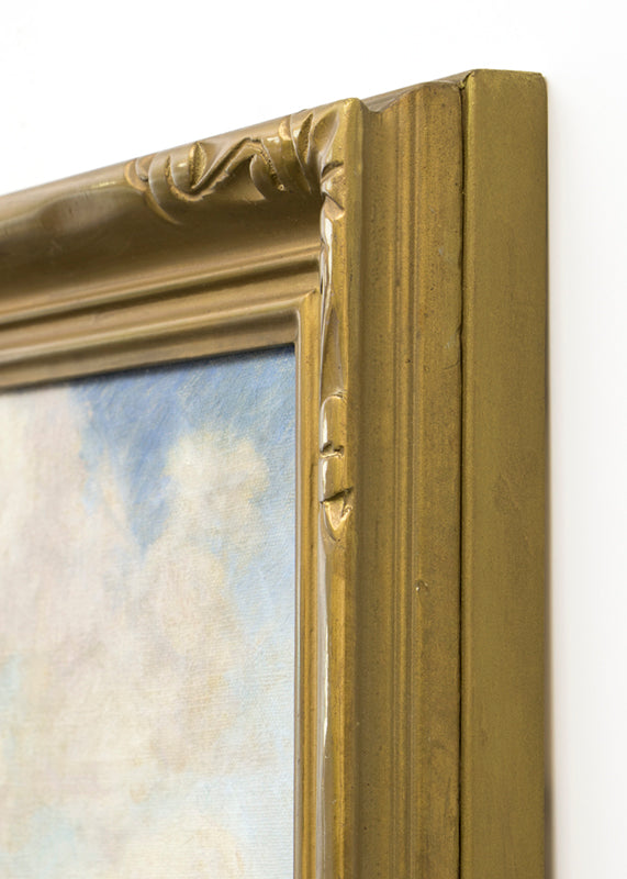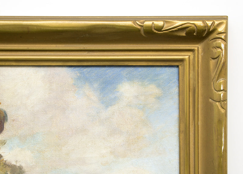 Original vintage circa 1920 painting by artist Louise Everett Nimmo. California landscape with trees overlooking a valley of hills. Oil on canvas. Signed by the artist, lower right. Presented in a custom frame.