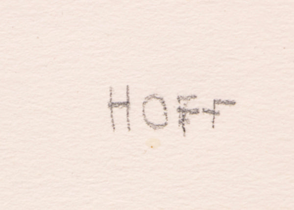 Between 1933 and 1960, her Chicago years, Hoff's work was deeply rooted in a figurative, regionalist style. She often used elements of magical realism, and many of her paintings have dreamlike qualities. As a child she learned about color by grinding down rocks, plants, and berries. Her color pallet during the Chicago years is indicative of her early, life color experimentation as she consistently used warm, earth tones in her work. Hoff was a born adventurer and traveled extensively. She lived, worked, taught, and painted in Europe, Mexico, Lebanon, Uganda, Brazil, and China. She also showed at the Denver Art Museum's Annual Western Exhibitions in 1952, 54, 56 and 57. In 1957 she showed along-side Colorado modernist Vance Kirkland at the Denver Art Museum's exhibition, Man's Conquest of Space.