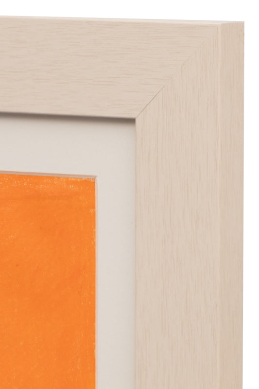 Road Stones III (Stacked Stones Series), original drawing by artist Margo Hoff. Abstract composition in shades of gray and orange. Crayon on paper. Signed by the artist, lower right; Titled on reverse. Presented in a custom white frame with an archival mat and UV 70 protectant glass.