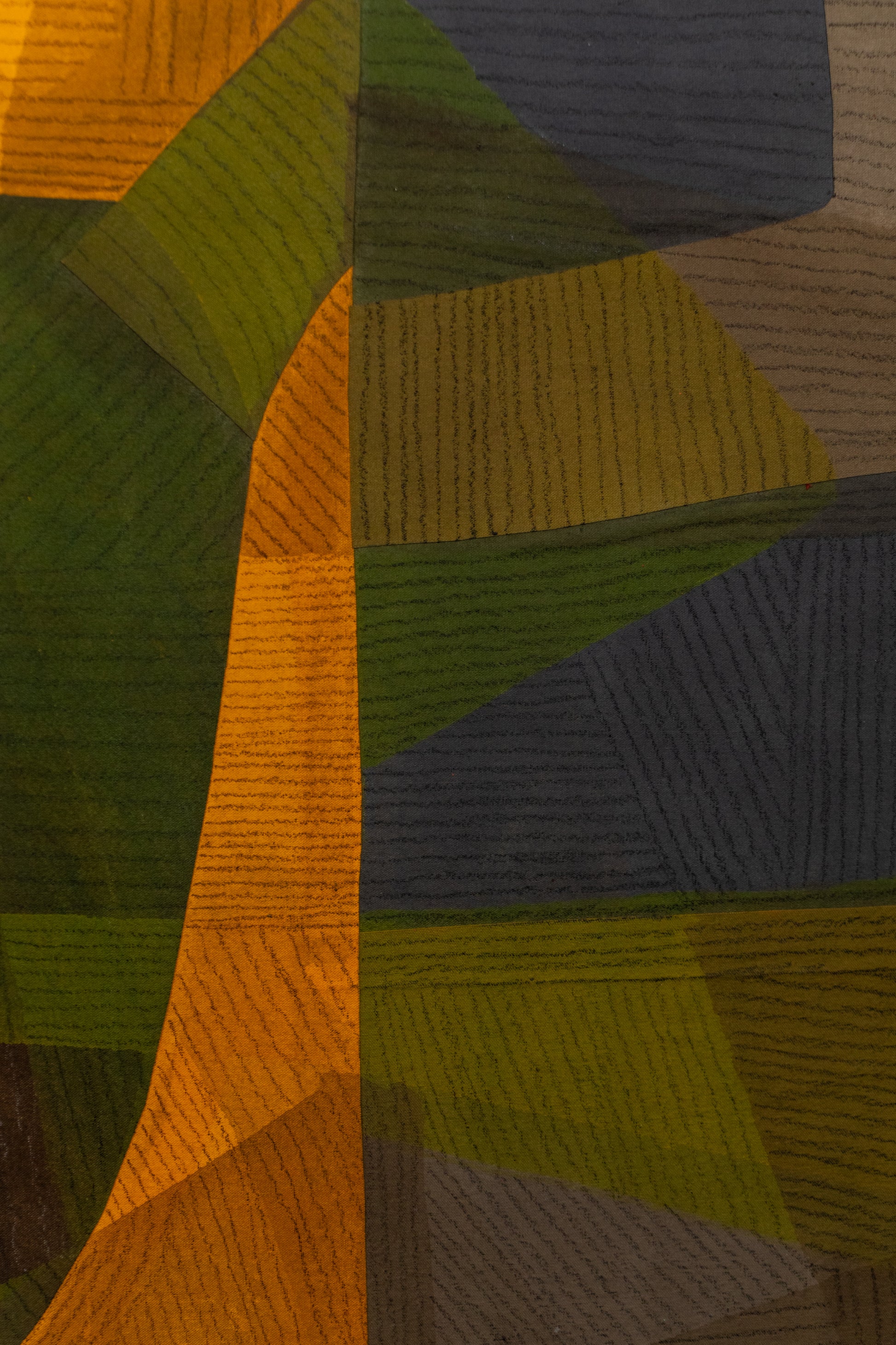 What was once a focus on the representational, her work began to change after 1957 when she saw Sputnik in its orbit around Earth. At that moment, feet firmly placed on the ground, she was able to imagine herself in space, looking down from the cosmos, and what she saw was an abstracted world. She then had the opportunity to peer into an electron microscope where once again she was looking down into what seemed to be a realm of pure abstraction. These two events profoundly changed her perspective and she began to move from figural painting to abstract, geometric collage.