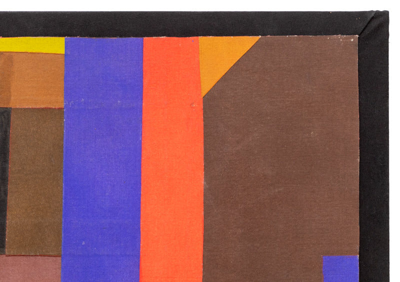 What was once a focus on the representational, her work began to change after 1957 when she saw Sputnik in its orbit around Earth. At that moment, feet firmly placed on the ground, she was able to imagine herself in space, looking down from the cosmos, and what she saw was an abstracted world. She then had the opportunity to peer into an electron microscope where once again she was looking down into what seemed to be a realm of pure abstraction. These two events profoundly changed her perspective and she began to move from figural painting to abstract, geometric collage.