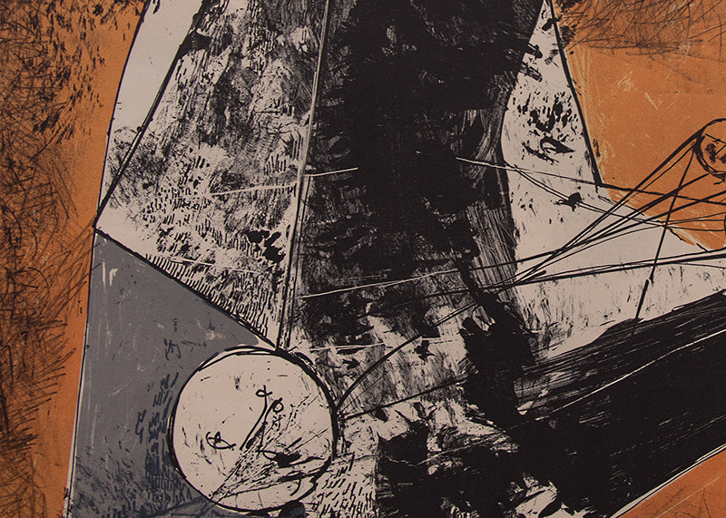Il Miracolo, original vintage circa 1965 fine art print by artist Marino Marini. Abstract composition in colors of orange, black, gray, and white. Lithograph on paper. Signed by the artist and numbered 41 of 50 printed, lower right. Unframed, custom framing options available.