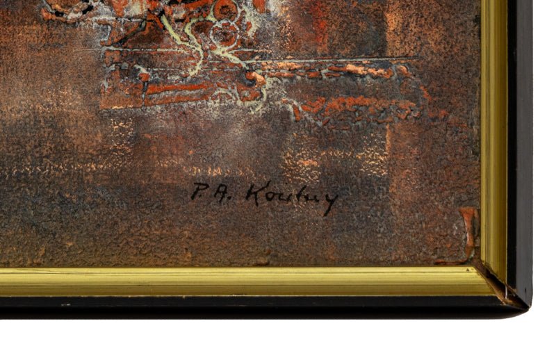 In 1960 the president of the Schaefer Pen Company, a collector of Kontny's work, invited him and his family for a summer trip to the United States that included New York, Chicago and Denver. Kontny visited the Metropolitan and Guggenheim Museums and the New York galleries, acquainting himself firsthand with the postwar developments in American art. He traveled with his family to Chicago to see the Marshall Fields Gallery where he had exhibited in 1957, and then on to Denver to meet gallery dealer John Pogzeba who had arranged his first solo show in the Mile High City in 1958. Pogzeba took the Kontnys to Taos and Santa Fe whose Native American and Hispano cultures provided Paul with abundant subject matter after relocating to Denver, Colorado, in 1962. He facilitated shows of Konty's work at the Philbrook Museum of Art in Tulsa, the New Mexico Museum of Art in Santa Fe, and the Maxwell Galleries in San Francisco.