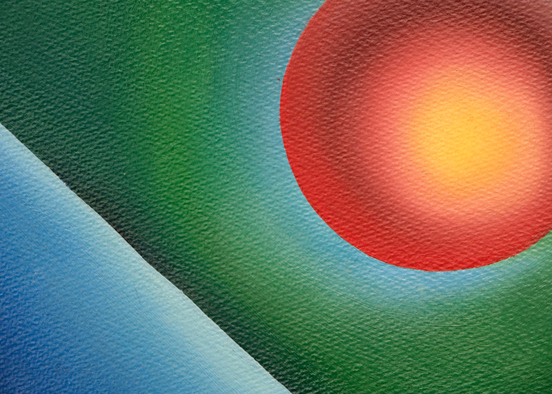 Basic Form Problem #1, original vintage circa 1940 painting by artist Ralph Anderson (1929-2010). The composition depicts a blue pyramid and a red and yellow sphere. Oil on paper. Signed by the artist and titled on reverse. Presented in a custom hardwood frame with an archival mat.