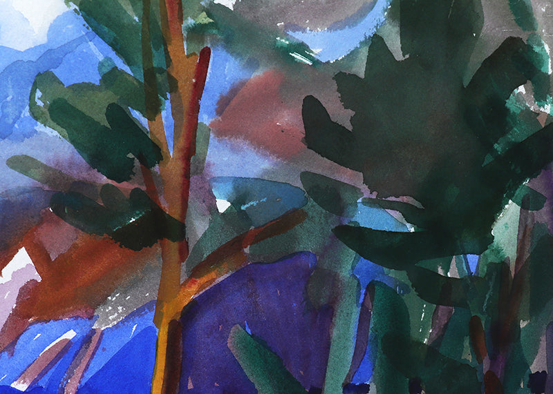 In the mid-1960s she began depicting the Colorado landscape. Due to the domestic responsibilities of her young family, she did rapid ink drawings in the field later completed at home with transparent color. As time allowed she painted plein-air watercolors in a spontaneous and colorful style, reserving her acrylics on paper and canvas for the studio during the fall and winter months when she could not work on location. Distancing herself from the mundane approaches to landscape painting prevalent in local art circles at that time, she remained connected to the contemporary art scene "by straightforward composition that arrests the eye and plays with harmonies and connections of line, form and inventive color."
