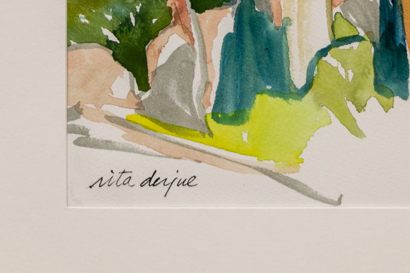 A skier, bicyclist and hiker with her husband, Derjue has climbed the summits of twenty-two of Colorado's fifty-three "fourteeners" (mountain peaks with an elevation of at least 14,000 feet). She combines these outdoor activities with sketching and painting on location. For more than fifty years she has maintained a daily journal illustrated with drawings and watercolors from the twenty-five countries in which she has painted during the course of her career. Among the most memorable are Paris, Munich and Central Europe for the history of art and their museums; Mexico for the culture and climate conducive to painting; and China for its landscape and architectural heritage.